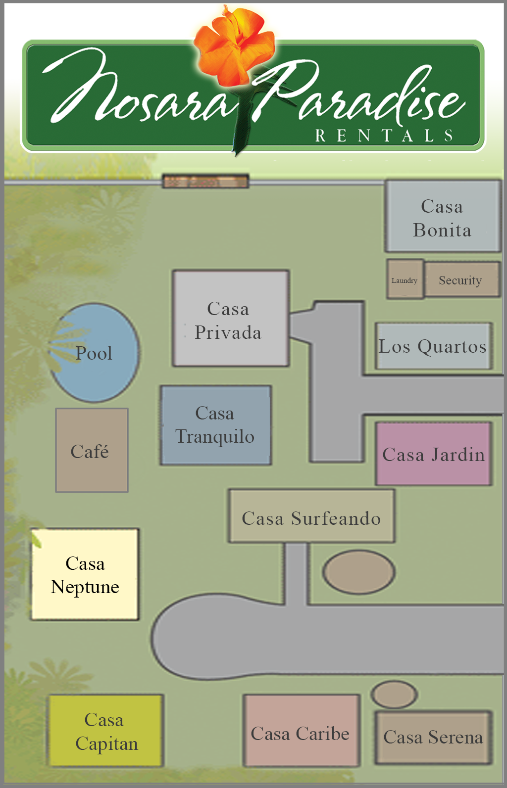 Casa Neptune's unique location gives you the best of both worlds, complete privacy and tranquility; yet close to all the amenities, i.e. restaurants, shopping, internet, etcetera. While staying in Casa Neptune you will be able to enjoy all the nature that Costa Rica has to offer. You will especially the monkeys sunning above the pool while the Pizotes meander through the gardens. Casa Neptune's surrounding garden blends perfectly with the adjacent nature preserve.